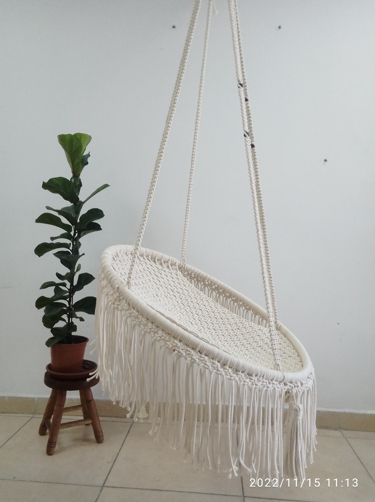 * Nossas cadeiras suspensas são feitas de fibra natural de algodão e são indicadas para ambientes internos ou varandas, portanto não devem ficar expostas à chuva e ao sol, sua instalação deve ser feita com Gancho próprio para teto e com ajuda de correntes para deixar na altura desejada